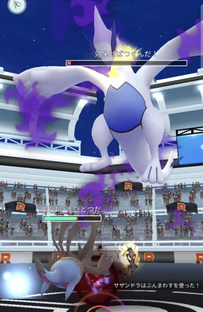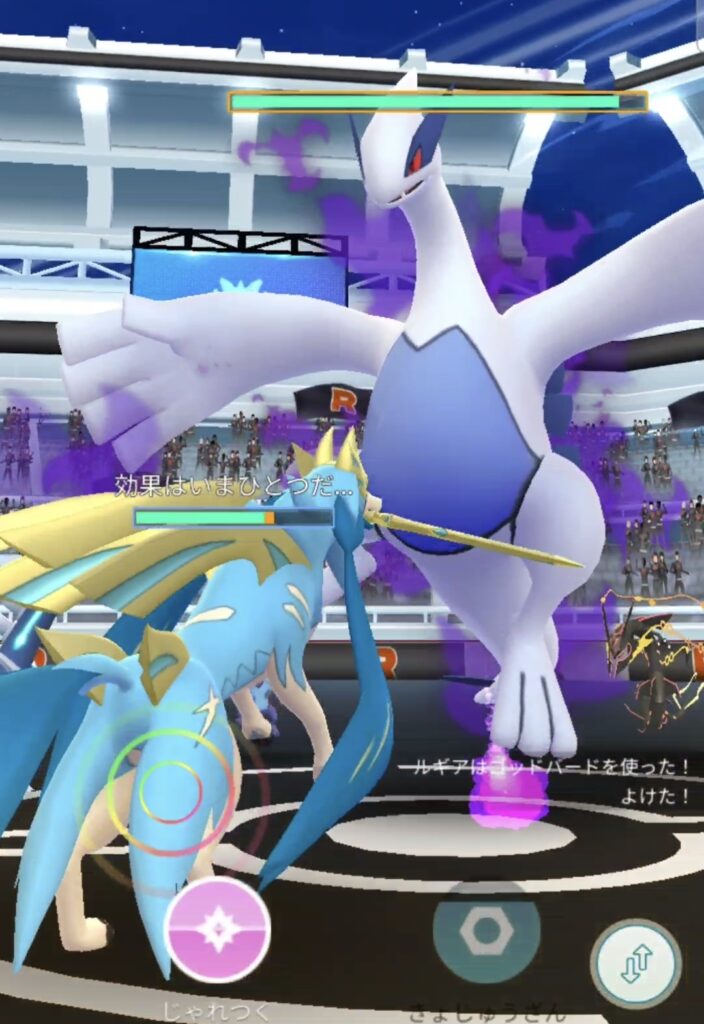 …というかサザンドラ君ナンカ使いやすいな?!今回使っているサザンドラはワイルドエリア長崎の強いポケモン枠なのでほぼMAX強化状態なうえ、かみつく+かみくだくのいわゆるかみかみ構成で挑めばルギアにしっかりダメージを与えつつ隙の無さから回避もやりやすい、ノーマル技がじんつうりきだった場合被ダメも抑えられるなど、思いの外いい対ルギアにポケモンかもですね。