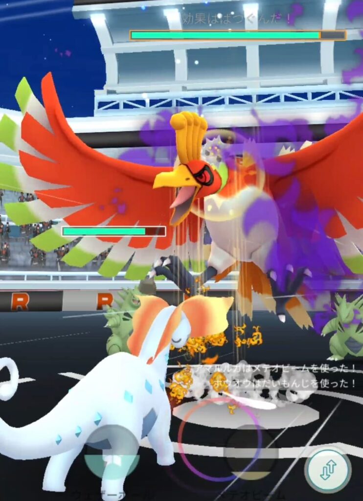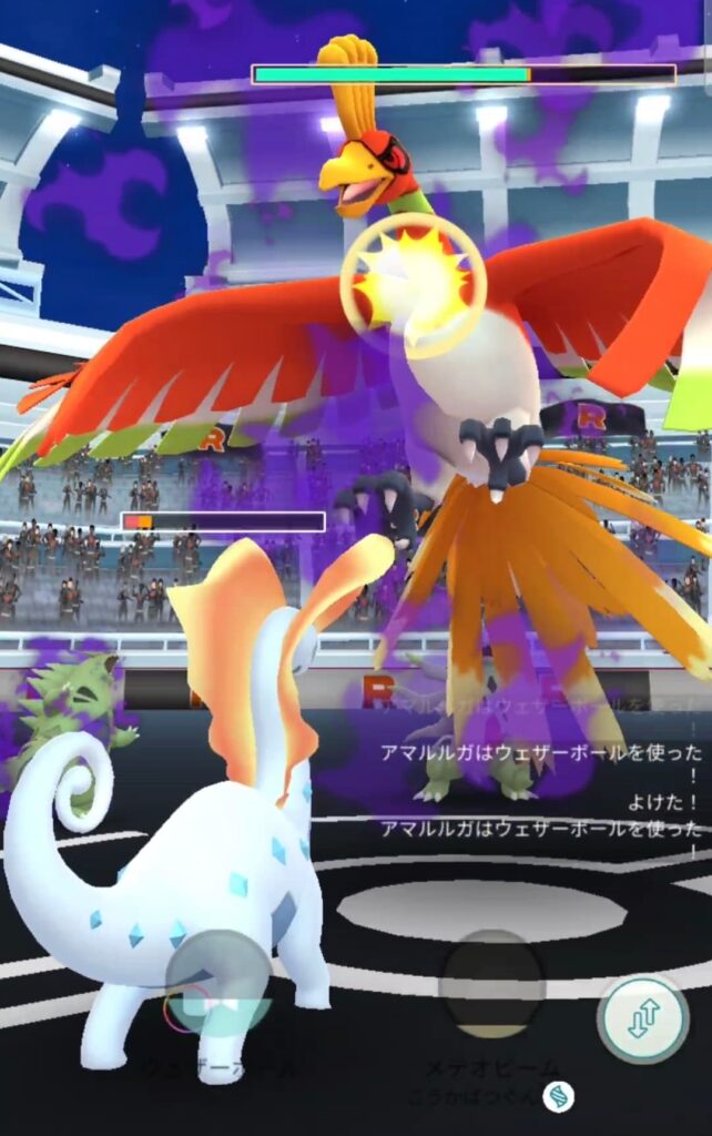 ホウオウの攻撃はどれもこれもアマルルガでは耐えるのが難しそうなのが難点ですねぇ…氷タイプの弱点の多さが目立つ場面です。